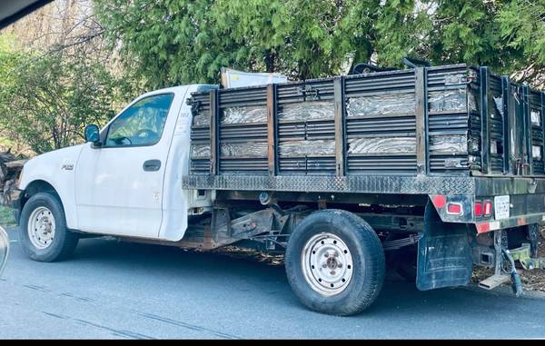 Ford F150 with stake dump body. New Battery, leaking transmission fluid. May need to be serviced. You will need to tow it out. Great work truck and good money maker.