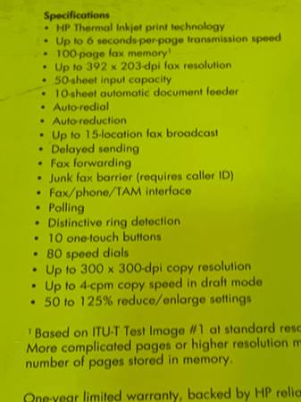 HP 1040 Inkjet Fax Machine with Built-In Telephone/Scan & Print. New in Unopened Box Please see pictures for complete details and description