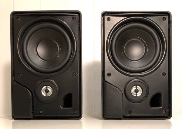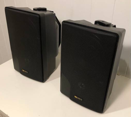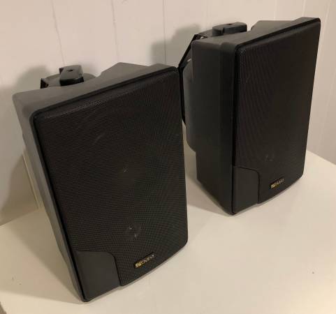 Advent Marbl Indoor/Outdoor Speakers: These speakers sound great and the cases and grills are in excellent condition. Features include: 5.25" ported woofer; 1" polymer-dome tweeter; magnetically shielded; 10-125 watt power capacity; weather resistant design for use indoors and outdoors; mounting brackets included. Dimensions: 9.5"H x 6.5"W x 6.5"D. Weight: 10lbs each. Cash Only. Will Not Deliver. If you see this ad the speakers are available. If you inquire about this item and don't receive a reply, please check your spam email folder.