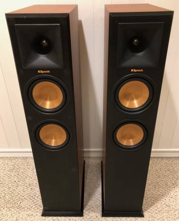 Klipsch Reference Premier Floor Standing Speakers (RP-260F): These are beautiful, high-end, high fidelity speakers that produce amazing sound and are in excellent, near new, condition. The cases and grilles are flawless with no scratches or marks. Features include: 1" Linear Travel Suspension (LTS) titanium tweeter minimizes distortion for detailed performance; dual 6.5" spun copper cerametallic cone woofers for flawless sound reproduction; the rear port allows for punchier low frequencies and cleaner, more powerful bass; advanced cabinet design with extra bracing to minimize resonance and vibration; strong, flexible, removable grilles; Frequency response 34-25kHz +/- 3dB; Sensitivity 97dB @ 2.83V / 1m; Power Handling (Cont./Peak) 125W/500W; Crossover Frequency 1800Hz. Dimensions: 40”H x 9”W x 18”D Weight: 50lbs each. Cash Only. Will Not Deliver. If you see this ad the speakers are available. If you inquire about these speakers and don't receive a reply, please check your spam email folder.