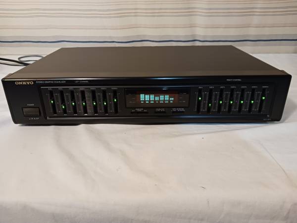 One used Onkyo Stereo Graphic Equalizer from back in the day when Onkyo made the great equipment in Japan and not China. This is 100% in like new condition. All lights & display work and do not fickler. I have had this in deep storage for many years. I am the original owner. This EQ comes from a smoke free, pet free house. I will be happy to hook it up for you. Dual 7 band. Spectrum analyzer.