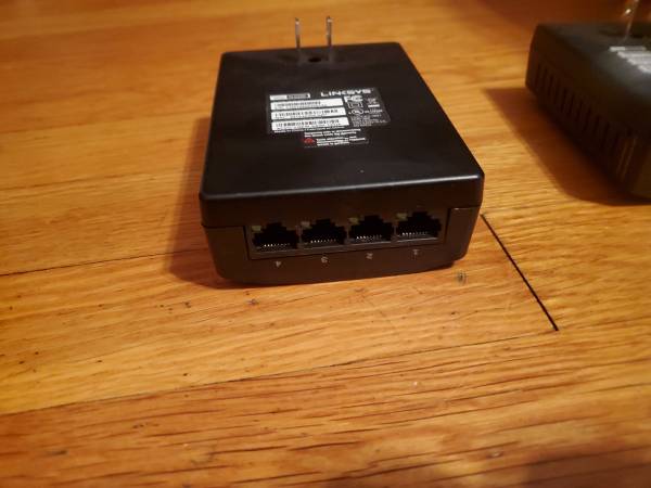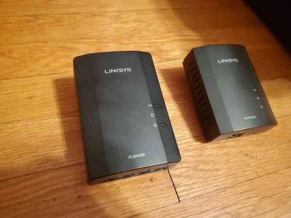 This is a set of Linksys PowerLine Adapters, model PLSK400-NP, in Excellent Used Condition.