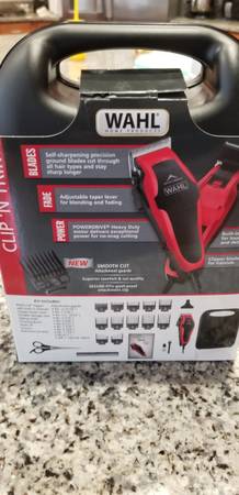 We have a brand new Wahl Clipper Clip 'N Trim 2 In 1 Hair Cutting Clipper/Trimmer Kit with Self Sharpening Blades. Never used and comes with all accessories, carrying case and a package. Can be used...