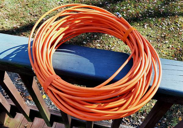 120' of orange coaxial cable; "Like new" condition; connectors on both ends