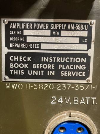 AM 598/ Power Supply SN: 6521 with MWO II-5820-237-351 I-I Dated 10/28/68