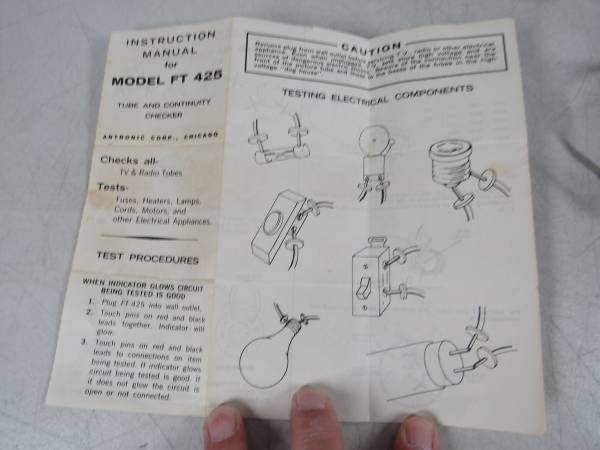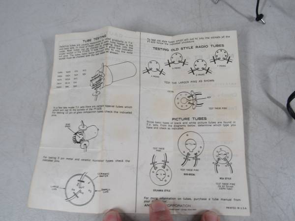 The Tube and continuity checker has not been completely tested. I was only able to test the continuity checker function. By touching the two leads together and the indicator illuminates. Unable to test the tube testing function because I did not have any vacuum tubes available. Instruction manual included. Good cosmetic condition.