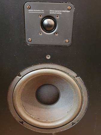 Great condition vintage acoustic suspension speakers known for their accurate stereo image. They sound really nice. Large boxes, but not deep, so take less space. Speaker surrounds seem to have been replaced and are in great shape. One small hole in one of the speaker grills (see pics). Sound wise 10/10, appearance 8/10. Selling these speakers only.