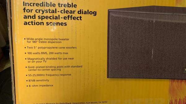 RCA PRO-CS55 2-Way Center Channel Speaker System is designed for use as a center speaker in your surround sound audio/video system. It gives you wide-angle (about 180 degrees) sound distribution with clear movie dialogue and vivid sound effects. It is magnetically shielded, so you can place it directly on top of you television for the most efficient center channel effect.