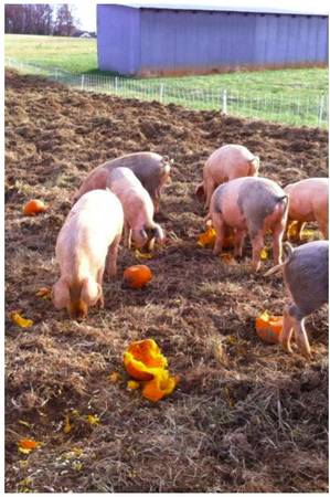 We are a family run heritage hog farm who also vends hot food (made on-site breakfast sandwiches featuring the pork we raise) at multiple farmers market locations in the area (mostly weekend mornings) [www.HogHavenFarm.com].