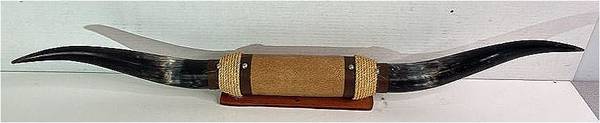 Bull Long Horn: 36” L - Mounted on Wooden Bracket
