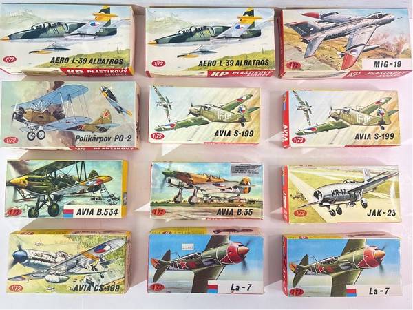 Collection of 12 KP Unassembled Plastic Aircraft Model Kits: Includes Aero L-39 Albatros, Avia S-199, La-7 & More - All in Original Boxes