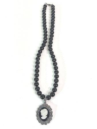 Vintage Onyx-Like Beaded Necklace: Sterling Silver 925 Marked Pendant & Clasp