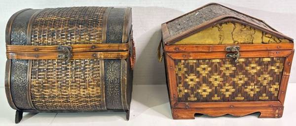 Set of 2 Vintage Handwoven Storage Boxes: Bamboo/Rattan