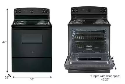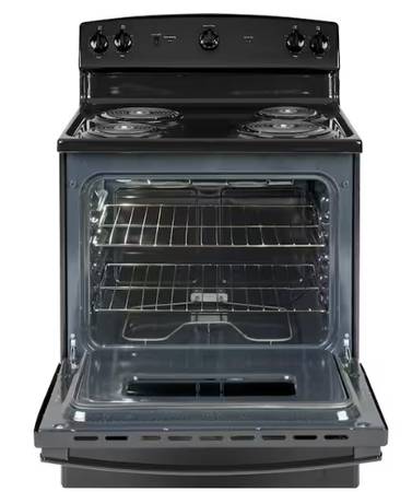 This is brand new factory sealed. Here's a link for more specs: https://www.homedepot.com/p/GE-30-in-4-Burner-Element-Free-Standing-Electric-Range-in-Black-JBS160DMBB/306258260#overlay