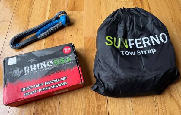off road utility suv truck tow hitch recovery rope snatch block snow