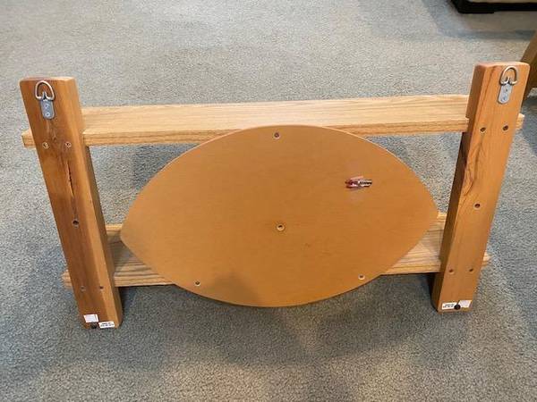 Solid wood shelf for child's room. 30 inches long 8 inches deep 17 inches high 2 screw for hanging it are taped to the back.