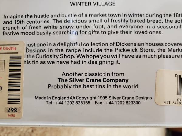 Silver Crane Tin Winter Village Market Store 1995 England Dickensian House.