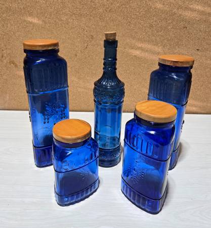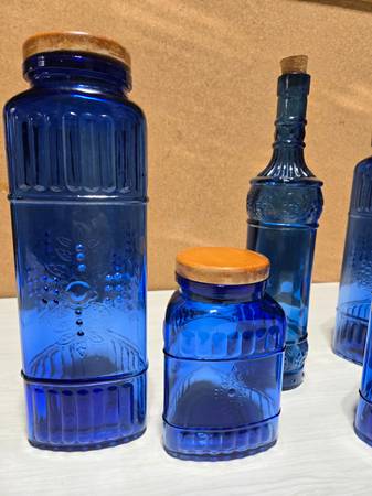 The blue glass set in the first and second photo is $15 and the set in the third and fourth photo is $5and the set in the fifth photo is $5.