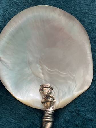19th Century Art Nouveau Mother of Pearl Serving Spoon With Silver Plated Serpentine Handle