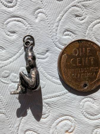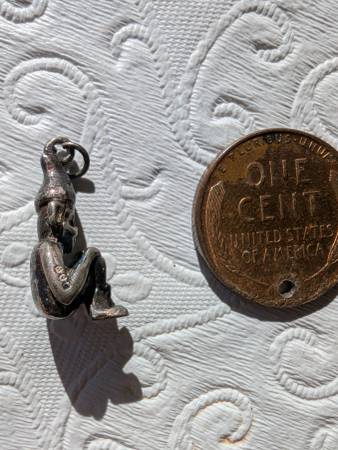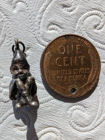 Vintage sterling silver charm in the shape of a sitting elf or pixie.