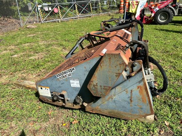 Selling a Bobcat 6B Landscape Rake in working condition. The attachment runs well and performs as it should, but needs bucket reinforcement.