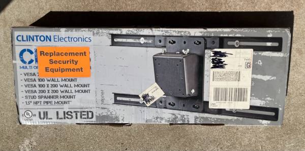 Brand new in the box wall mount. Pendant Bracket for Monitors up to 35lbs. Delivery available. We accept; Apple Cash, Cash, Cash App, Chime, Venmo, and Zelle.