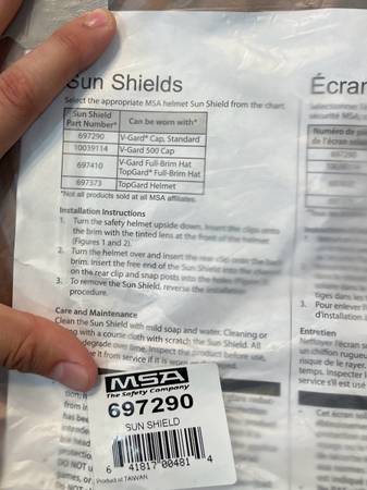 Model - 697290. Sun shield visor for cap style hard hats. One size fits all. Delivery available. We accept; Apple Cash, Cash, Cash App, Venmo, and Zelle.