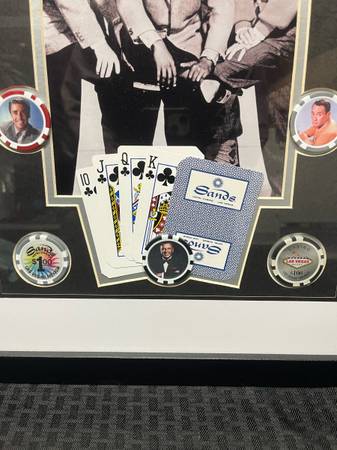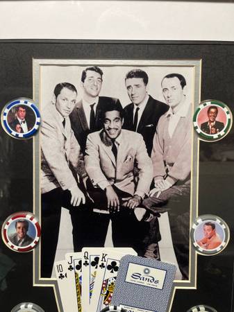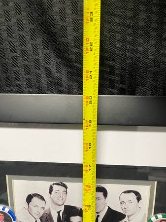 Great condition. Measurements are shown in the photos. The Rat Pack was an informal group of entertainers who rose to fame in the 1950s and 1960s, primarily associated with the Sands Hotel and Casino in Las Vegas. The core members featured in the photograph are: Frank Sinatra, Dean Martin, Sammy Davis Jr., Peter Lawford, Joey Bishop. Delivery available. We accept; Apple Cash, Cash, Cash App, Chime, and Venmo.