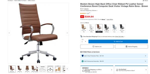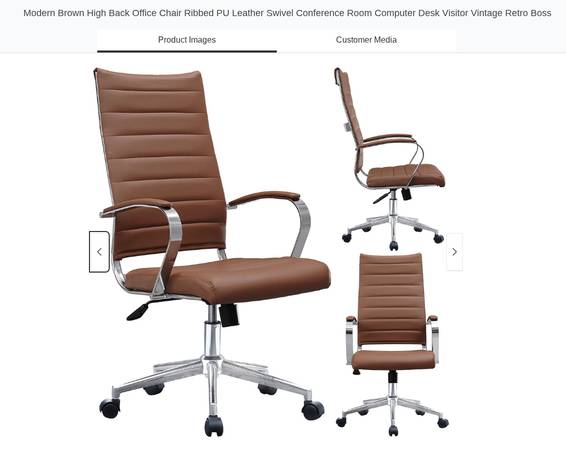 Modern Brown High Back Office Chair Ribbed PU Leather Swivel Conference Room Computer Desk Visitor Vintage Retro Boss