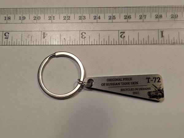 Keychain made out of a piece of destroyed russian T72 tank: $35