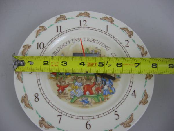 The clock is a new old stock item. The clock is 8" diameter, and has never been wall mounted or displayed. I did test to make sure the time was kept. Uses one "AA" battery that is not included. Comes in the original box which has some minor storage wear.