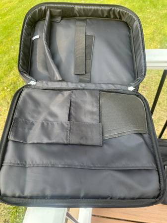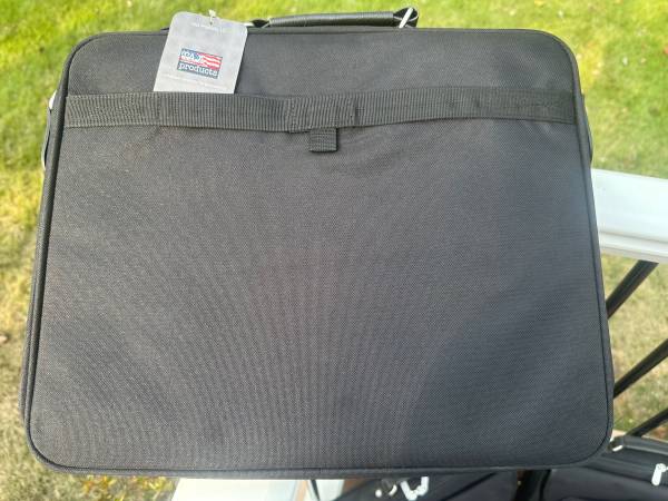 Padded laptop bag provides multiple compartments for a laptop/tablet, charger/power supply, pockets for pens/markers and accessories, and secured pads/papers. Comes with comfortable handle as well...