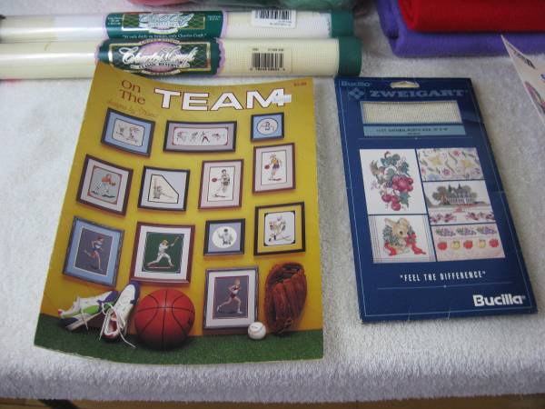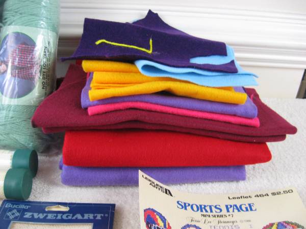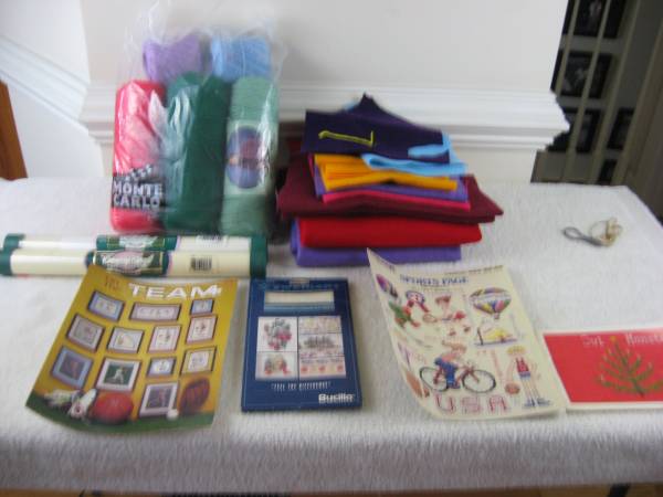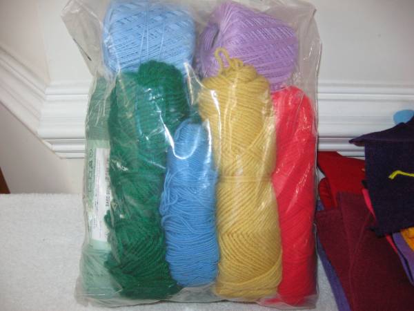 This is a mixed lot of knitting supplies, and some is used and unused. The yarn is acrylic See photo's