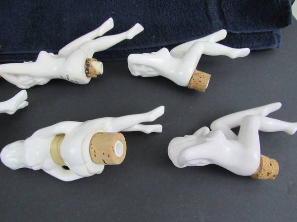 The bottle stopper are 3 3/4" up to 6 1/2" length. There is 2 of the stoppers that have pieces of the corks broken of. There is no ceramic pieces broken or missing on any of the stoppers. Good condition with some minor usage wear aside from the two with broken cork pieces.