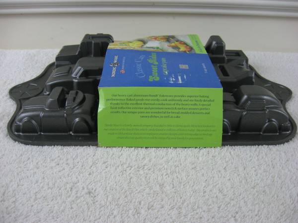 The cake pan is 15 1/2" X 9 1/2" X 2". Never used. See photo's