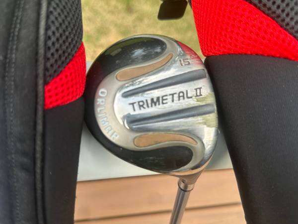 Four classic Orlimar Fairway woods, with magnetic closure covers. Lofts are 13, 15, 26, and 30 providing versatility for variety of distances, elevations, and conditions. Flex: Stiff