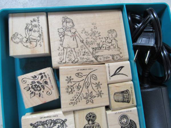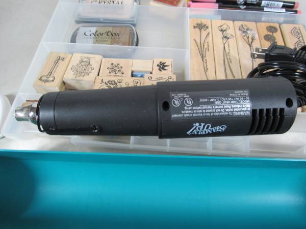 The Stampin Up lot is in good condition with some minor usage wear. The heat gun is in very good working and cosmetic condition. The storage case has one broken latch. See photos