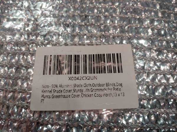 NEW - 90% Aluminum Foil Shade Cloth, Outdoor Blinds, Dog Kennel Shade Cover, Sturdy Durable Sunblock Shade Mesh with Grommets for Patio Plants Greenhouse Cover, Chicken Coop Porch,13 x 13 FT, Aluminum Foil Shade net blocks up to 90% of sun, 10% of the sunshine can through it. Protect plants from the effects of strong sunlight and overheating. Comes in a sealed plastic container.