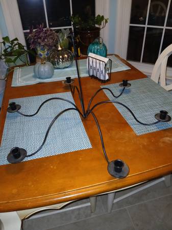 This is a vintage wrought iron six-arm hanging candelabra. 15 inches tall, 28 inches wide. Pick up Sterling VA $20