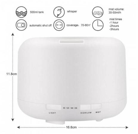 Give your home a sense of calm 500ml capacity a choice of 5 colors to switch too light: dim or bright humidifier vaporizer, timer and Auto-off safety switch