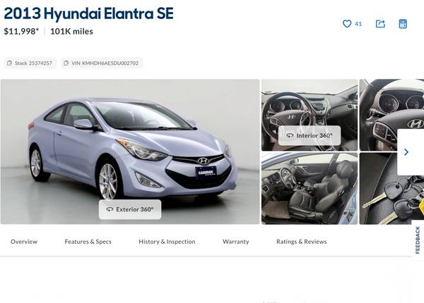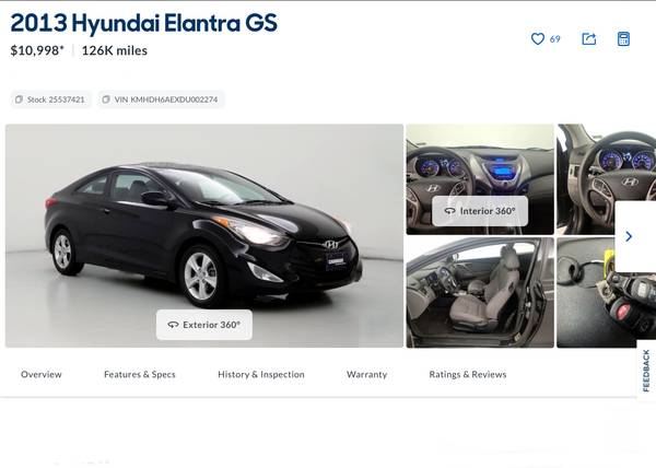 2013 Hyundai Elantra Coupe in excellent condition no accidents, no mechanical issues. Super clean. Perfect working order $125,000 miles Brand new Headlight Assembly and LED bulbs