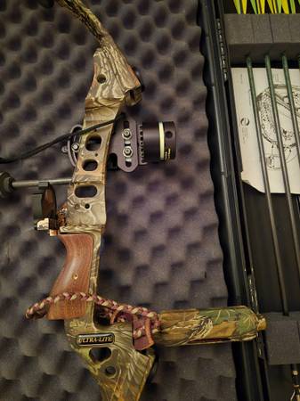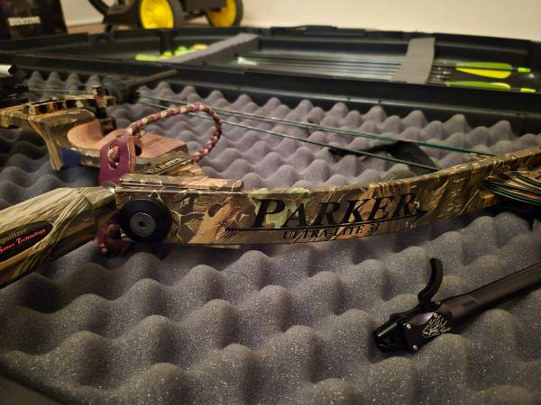 Left-handed Parker ultralite 31 compound bow in excellent condition with lots of accessories 150$ , trades welcome