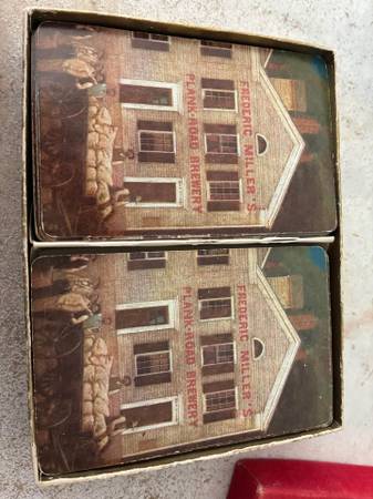 Used - Good box of playing cards featuring the Frederic Miller's Plank Road Brewery Comes in a red velvet box Location foggy bottom
