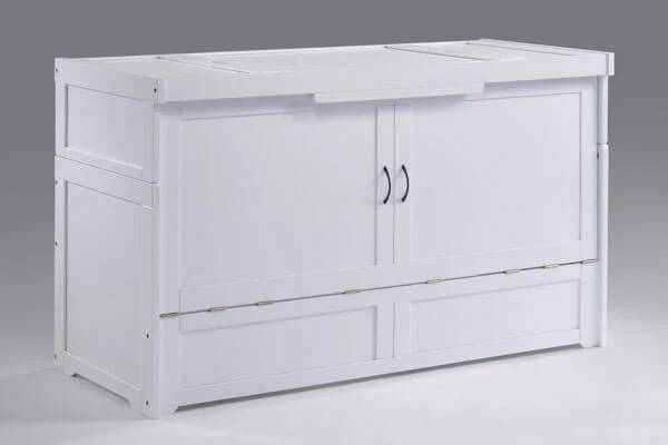 Our Murphy Cube Cabinet Bed is a truly instant guest bed. Convert it from handsome cabinet to comfy bed in less than a minute. When all closed up it just takes 10 square feet of floor space. Easy to use, easy to love. Currently in store. Store Model available for $1269.