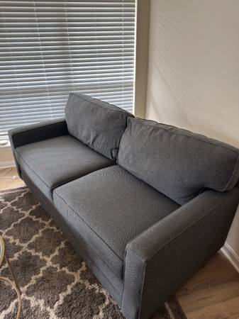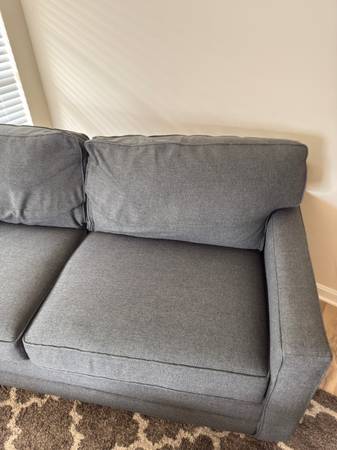 In great shape, selling as we’re moving in a couple weeks. Couch measures 77” (length) x 36” (depth) Comes from a pet free, kid free, smoke free house. Lightly used as it’s been in the den.