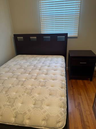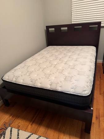 Everything is in great condition. The mattress is only 4 years old and haven’t been used in almost 2 years. We are selling it because we are moving from a house to an apartment and have an extra bed