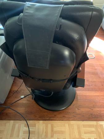 Massage chair still fully works! Have a strap tie down to the back since it’s loss. Comes with the remote control! I will also include the bench that comes with the feet rest. Any questions feel...