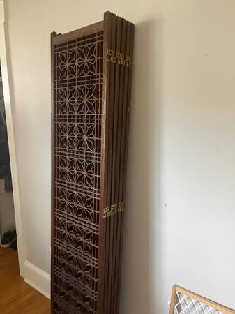 We have decided to sell our authentic mid century Japanese teak folding screen. We used this as a backdrop for our home office but no longer need it with an upcoming renovation. Would like it to go to a loving home. The screen was bought from the original owner and came from Japan when served there in the military.