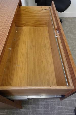 Wood file cabinet for sale made by Piedmont model 335 based on sticker inside. No keys, minor damage and wear, so willing to negotiate. *PICKUP ONLY* will assist with transit to vehicle