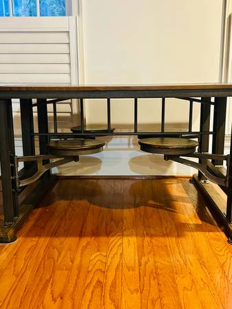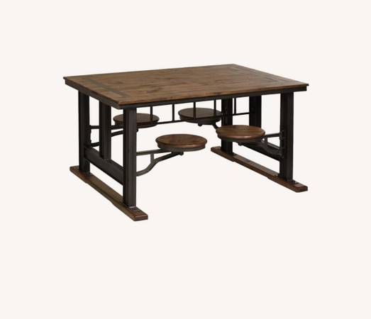 Extremely solid and sturdy dining table with floating seats for easy floor clean up Seats swivel to tuck away underneath table as needed and for easy vacuuming Like new with no issues 3 ft Height x...